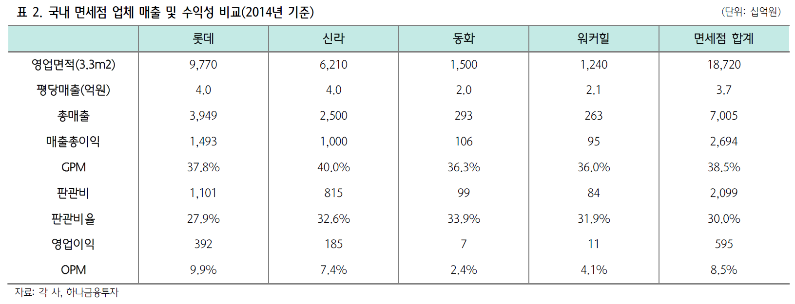 실제로 호텔롯데와 호텔신라는 단일 업체로 글로벌 화장품을 가장 대량으로 직매입하는 회사들이다. 따라서 면세점 시장을 제외하고 한국 화장품 시장을 논하기 어려워졌다. 아모레퍼시픽과 LG생활건강 등 메이저 화장품 업체들의 영업이익에서 면세점 채널이 차지하는 비중은 50%에서 100%에 이르기도 한다. 면세점 채널 전망은 이들 업체들의 실적 추정에 핵심요소다.